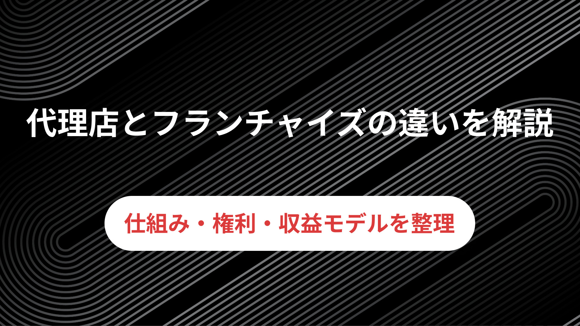 自社の商品やサービスの販路を拡大するためによくとられる戦略として、代理店やフランチャイズの利用があります。代理店とフランチャイズには共通する部分も多いため、その違いを聞かれるとよくわからない方も多いのではないでしょうか。この記事では、代理店とフランチャイズについて、次のポイントで解説していきます。