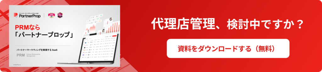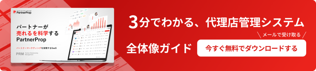 本記事で解説したKPI設計やパートナーイネーブルメントの6ステップを実際に運用するには、代理店の育成状況と営業成果を一元管理する基盤が欠かせません。PartnerPropは、代理店のオンボードから育成状況の可視化、案件管理、手数料計算までを1つのプラットフォームで実現できるPRMツールです。