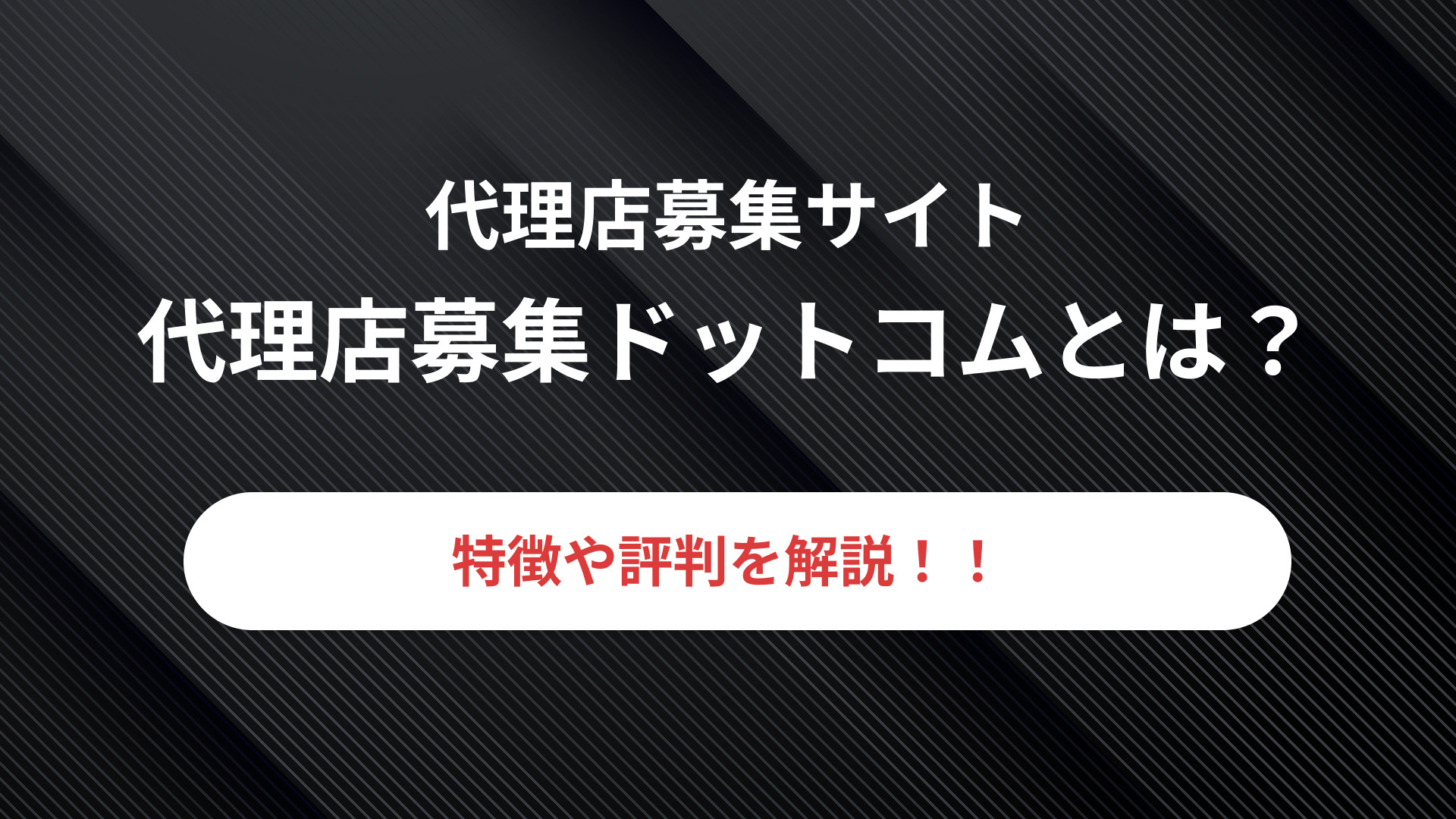 収益性の高い商材を探している方や、これまで扱っていた商材が売りにくくなってしまった方、新規事業を立ち上げたい方に、代理店募集サイト「代理店募集ドットコム」がおすすめな理由や実際の口コミ、料金体系までを網羅的に紹介していきたいと思います。