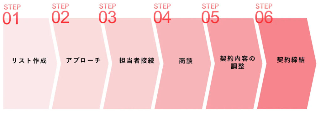 テレアポによるパートナー開拓は、以下の6つのステップに分けて設計するとスムーズに運用できます。