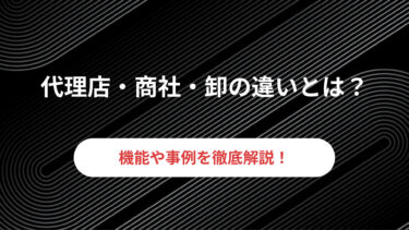 みなさんは代理店・商社・卸の違いをご存知でしょうか。 ビジネスにおいてよく耳にする代理店・商社・卸。しかし、それぞれの違いについて説明できる人は少ないのではないでしょうか。 そこでこの記事では、代理店・商社・卸について[…]