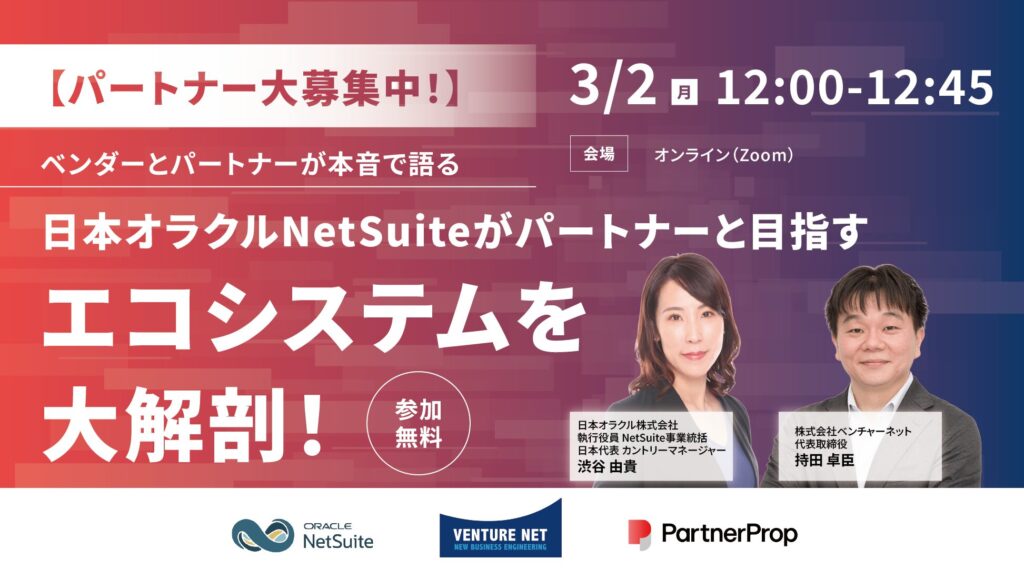 【パートナー大募集中!】ベンダーとパートナーが本音で語る日本オラクルNetSuiteがパートナーと目指すエコシステムを大解剖!